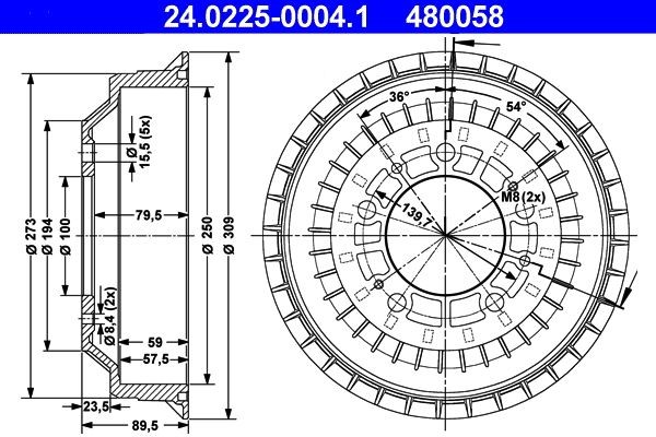 - Bremstrommeldurchmesser außen [mm]:309